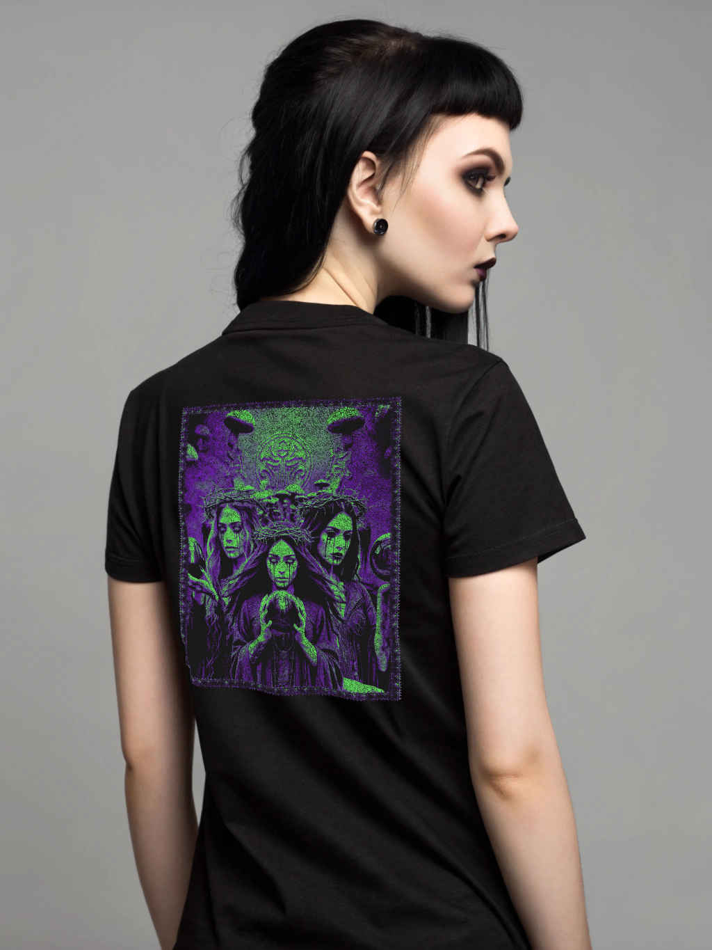 Die Kombination aus Front- und Rückdesign macht dieses Shirt zu einem ausdrucksstarken Kleidungsstück für alle, die außergewöhnliche grafische Motive schätzen.